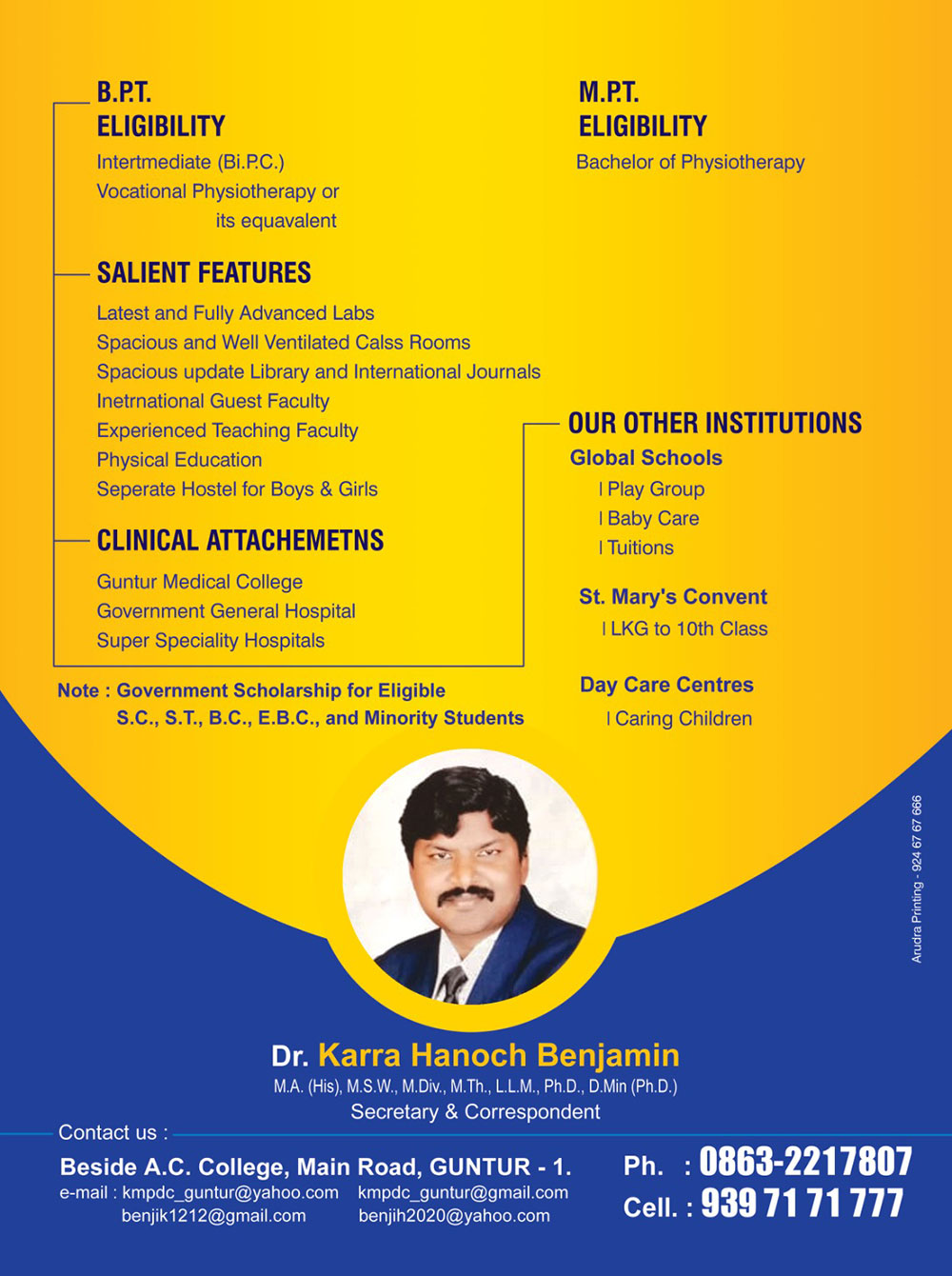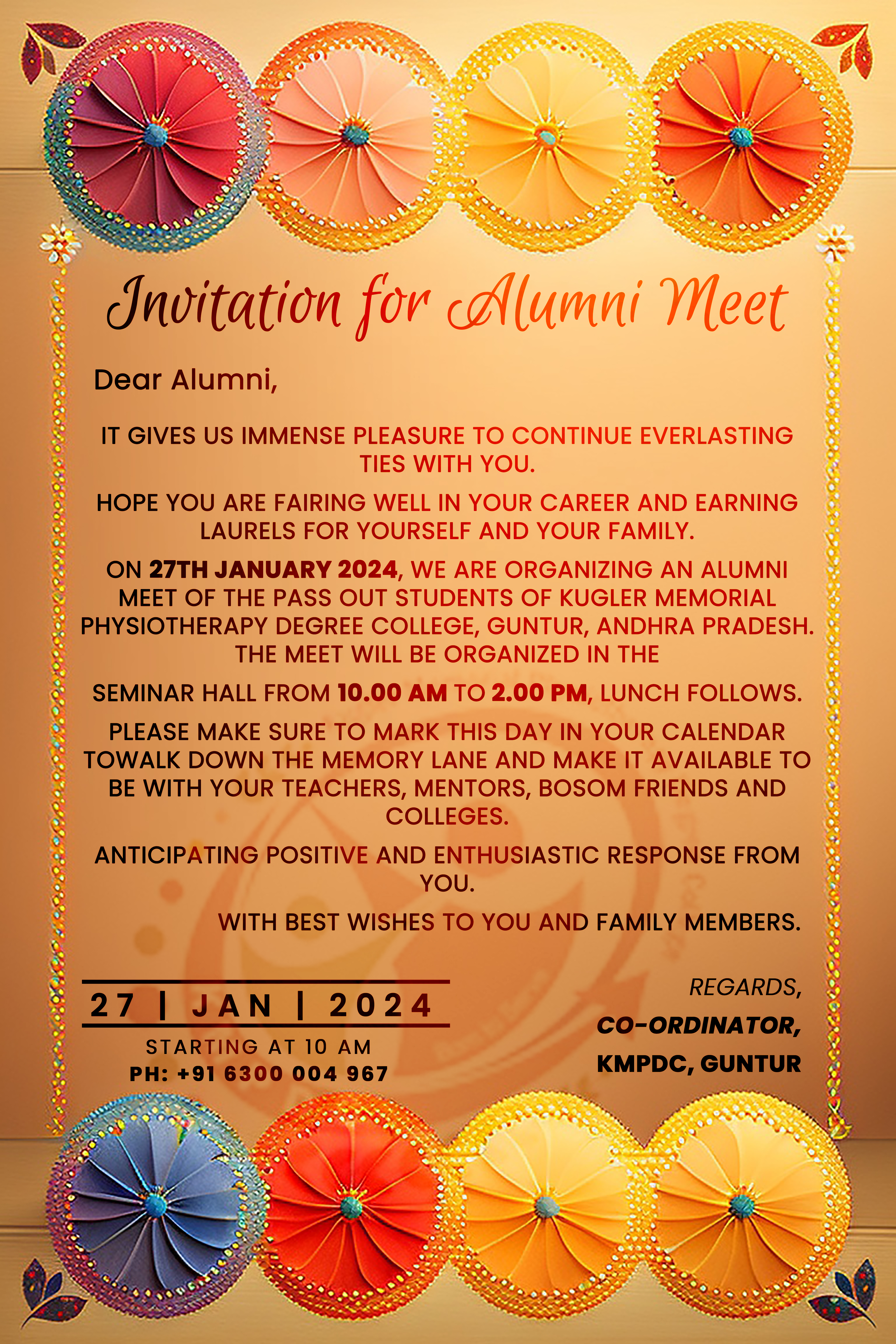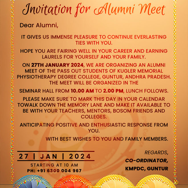 The Kugler Memorial Physiotherapy Degree College has established a tradition of excellence for over 25 years.